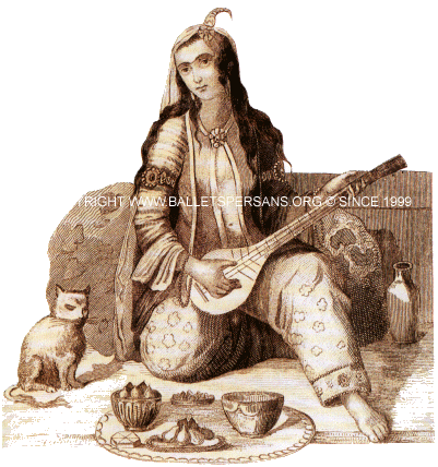 The English dance historian, Lilly Grove, writes in her book “Dancing” which was published in 1895: “Mohametan views concerning music and dancing have greatly narrowed the circle of amusements in Persia. Dancing girls were numerous at Court until the reigning family ascended the throne of Persia; but at present the dance is given up to women of low condition and of slack morality, or to young boys dressed as women.”